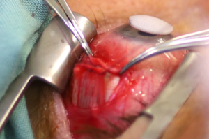 During muscle plication surgery, the surgeon makes an incision on the muscle and folds or overlaps it, effectively shortening its length. By increasing the muscle’s mechanical advantage, the alignment of the eyes can be improved.